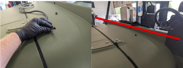 - Included is a section of D-shaped rubber weatherstrip to go between the windshield frame and the cowl. This is placed near the top of the cowl between the rollbar mounts, prior to installing the windshield. (Shown Below) We also recommend using a heat gun on the adhesive in order to get strong adhesion.